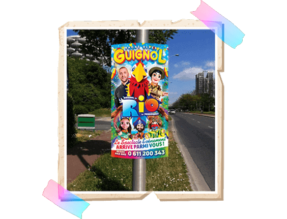 Notre publicité s'effectue par moyen de panneaux posés quelques jours avant notre passage et retirés par nos soins avant notre départ. Leur système de fixation n’abîme, ni ne salit le mobilier urbain et le nombre de panneaux apposés est limité pour éviter toute pollution visuelle.